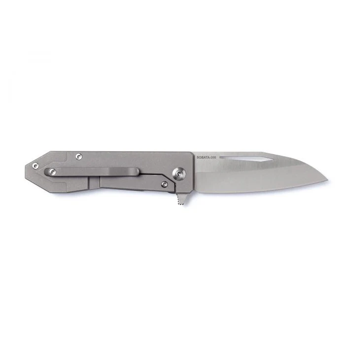 This simple, yet classy design serves as the ultimate every-day carry knife. The combination of the satin finished sintered titanium blade, and the blasted titanium handle creates a classic looking knife that will feel practically weightless in the hand. The single position titanium clip allows the knife to be conveniently attached to a belt loop or pocket for easy access. The modified sheepsfoot blade, along with the superb edge retention of the sintered titanium, has an excellent balance of form and function. The Sobata-398 is the perfect knife to take on long backpacking expeditions, to include in a tackle box for weekend fishing trips, or even just to be a centerpiece to an amazing collection!