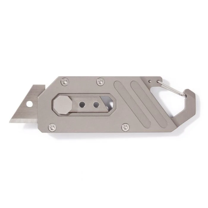Get razor sharp cutting power without the weight and bulk of a normal pocket knife. The UtiliTi Knife's slim design and aerospace titanium construction is lightweight, yet durable, to help minimize your EDC while not compromising functionality. Its unique hexagon safety locking mechanism allows for secure carrying and easy, one-handed operation. Not just for pocket carry! Use the integrated carabiner to clip it to your pack, keychain, or pants for always-in-reach accessibility. Once the blade dulls, simply replace it with one of the 10 included replacement blades made from high carbon steel (CK75). At just over an ounce, you'll forget it's there until you need to get the job done.